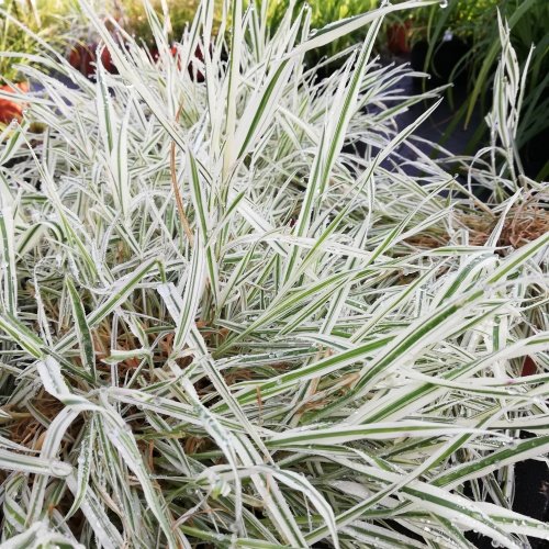 Tráva s úhľadným, panašovaným listom so sýto zeleným stredom a krémovo bielymi okrajmi. Dorastá do výšky približne 50 cm. Tráva je atraktívna vďaka listom, ale aj striebristým kvetenstvom, ktoré na rastline kvitne v júni a júli.