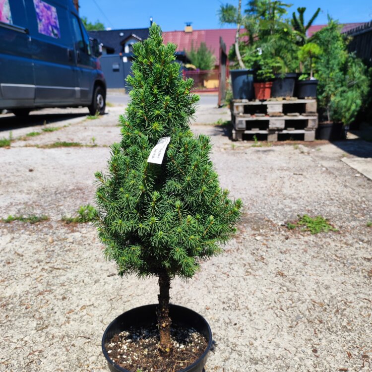 Conica je obľúbený, efektný nízky druh smreka bieleho. Jeho prirodzený tvar je pravidelne kužeľovitý, výhodou je, že ho nie je nutné strihať. Rastie pomaly a husto, za podmienky ak je umiestnený na slnku a v nevysychavej pôde. Ďalšou výhodou je, že nevyholuje vetvy. Ihlice sú drobné, mäkké, mierne pichľavé a jasne zelené. Nie je náročný na pôdny typ. V záhradách dorastá do výšky 2 m, ak má dostatok miesta a času, dokáže však narásť na dvojnásobok. Šírka je 1 - 2 m. Conica je vynikajúci terasovitý stromček, hodí sa do črepníkov ,skaliek a do balkónov. Výborne sa tvaruje a dobre znáša rez.
