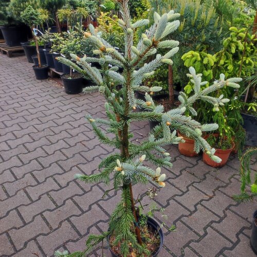 Smrek s hustým, kužeľovitým tvarom a pomalým rastom. Po 10 rokoch dosahuje výšku 2 m a šírku 1 m. Staré exempláre dorastajú do výšky 5 m a podobnej šírky na základni. Spodné konáre si ľahnú na zem a pokračujú v raste smerom nahor. Ihlice sú krátke, 6-12 mm dlhé, tuhé, sivozelené, na vrchnej strane vetvičiek, radiálne usporiadané, mierne smerujúce dopredu, pri trení balzamovo voňajú. Malé šištice, podobné šištičkám smrekovca sú 2 - 3,5 cm dlhé, mladé červenofialové. Varieta je veľmi odolná a nespôsobuje problémy pri pestovaní. Najlepšie rastie v mierne vlhkých a vlhkých polohách, na slnečných alebo mierne zatienených miestach.