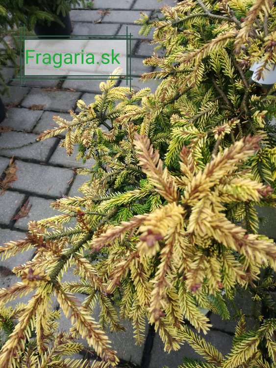 Skylands je robustný, symetrický druh smreka s odstupňovanými poschodovými vetvami, na ktorých rastie zlaté ihličie. Staršie, vnútorné je viac tmavo zelené a s vonkajším zlatým vytvára pozoruhodný kontrast. Mladé jedince potrebujú útočisko pred intenzívnym slnkom, až kým sa ím úplne nevyvinie koreňový systém. Mladé jedince trpia úpalom, mnohý pestovatelia vytvárajú slnečné prístrešky na ochranu svojich mladých stromov. Akonáhle sú však dospelé, stromčeky sú úplne tolerantné k priamemu slnku. Po 10 rokoch rastu bude mať zrelý exemplár výšku 4 až 5 metrov a šírku 1,6 metra, ročná miera rastu je od 30 do 45 cm. Táto varieta bola nájdená v roku 1950, rastúca v Skylands Gardens, časti botanickej záhrady v Ringwood, New Jersey. Mrazuvzdorný do -31,7 C. V minulosti sa niekedy objavoval pod názvom Aurea Compacta.